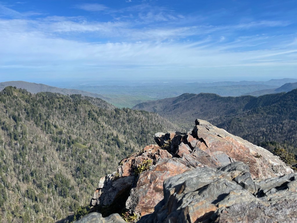We took off down hill to start the day, we went for about 1 mile to a super popular day hike spot, Charlie’s Bunion. The view from here was amazing! From here, we could see Gatlinburg and Douglas Lake off in the distance.