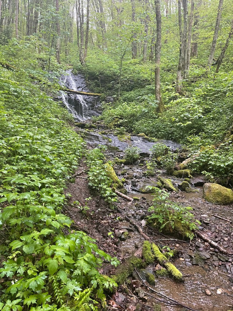 It was a beautiful, and wet short day, but the waterfalls were plentiful along this stretch, at least in the first 3 – 5 miles of the trail which followed a nice mountain stream!