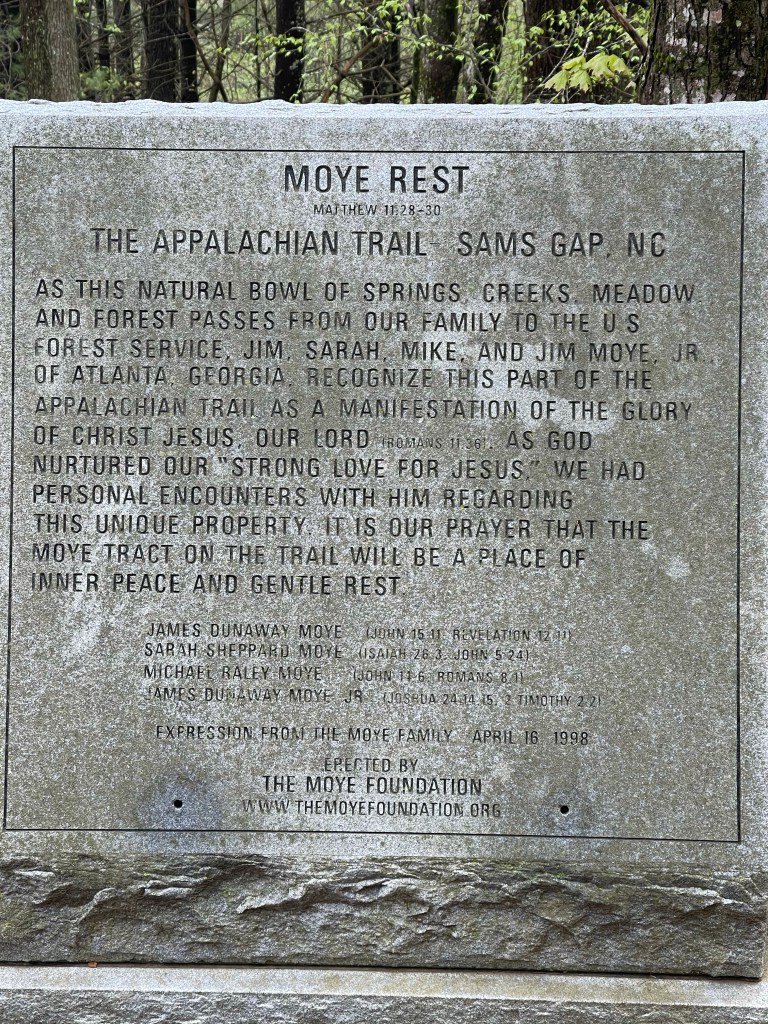 The rest of the day was wet and dreary, but it got us to where it we needed to be. As we came down into the area where we were to be picked up along I-26 we saw this plaque that was set by the family that gave some of the land for this portion of the AT!