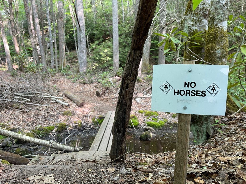 The last 50 or so miles there are horse trails intermingled with the AT so signs such as this one are seen often so that the riders do not mistake the AT for one of their horse trails. Once we got away from this area and the Troutdale, Va area, the horse paths stopped.