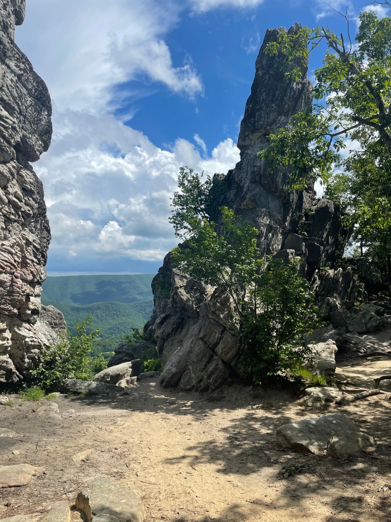 Finally getting to the top, I doubted myself multiple times climbing this, we enjoyed some views down the blue blaze which lead to the Dragons Tooth, the first of Triple Crown Sites.