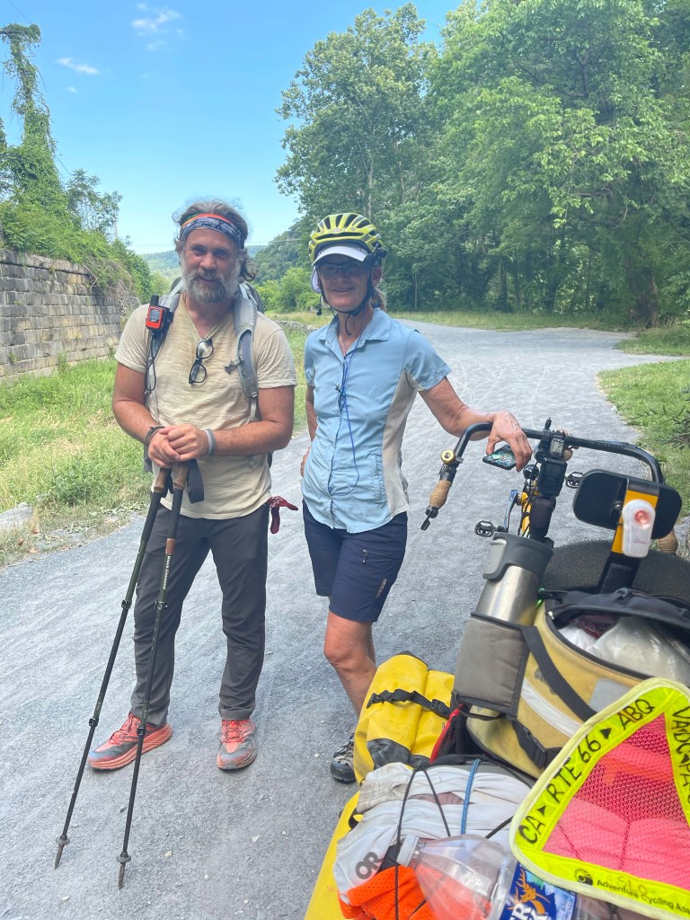 Just before we crossed the bridge back into West Virginia to meet John, he rode his bike back and drove to get us, we met a young lady who was riding her bike from California to Washington, DC. She heard about the canal path and decided to jump on it and ride it into DC.