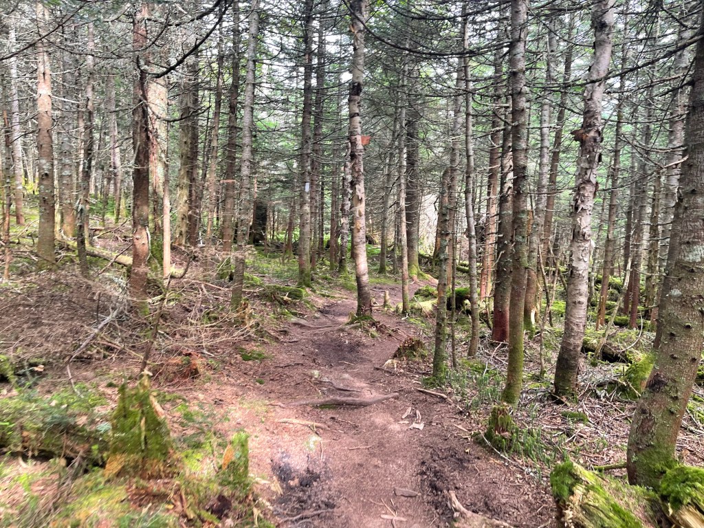 Today was climbing up and over Killington peak, although we didn’t go to the very top, since it was a side trail, it was still a big climb. 2,434 feet but it was in 5.6 miles so it wasn’t too awful. It was the typical climb for the region, scattered trees of all sorts and then once we hit the higher elevations it turned to all Christmas trees and balsam pines. Oh that smell!! I love it!!