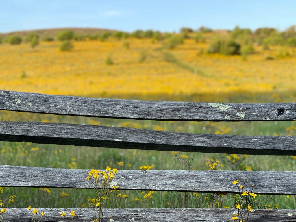 We crossed a meadow of green grass and beautiful yellow flowers that were all tall and being tossed about by the breeze that was also hitting our face.