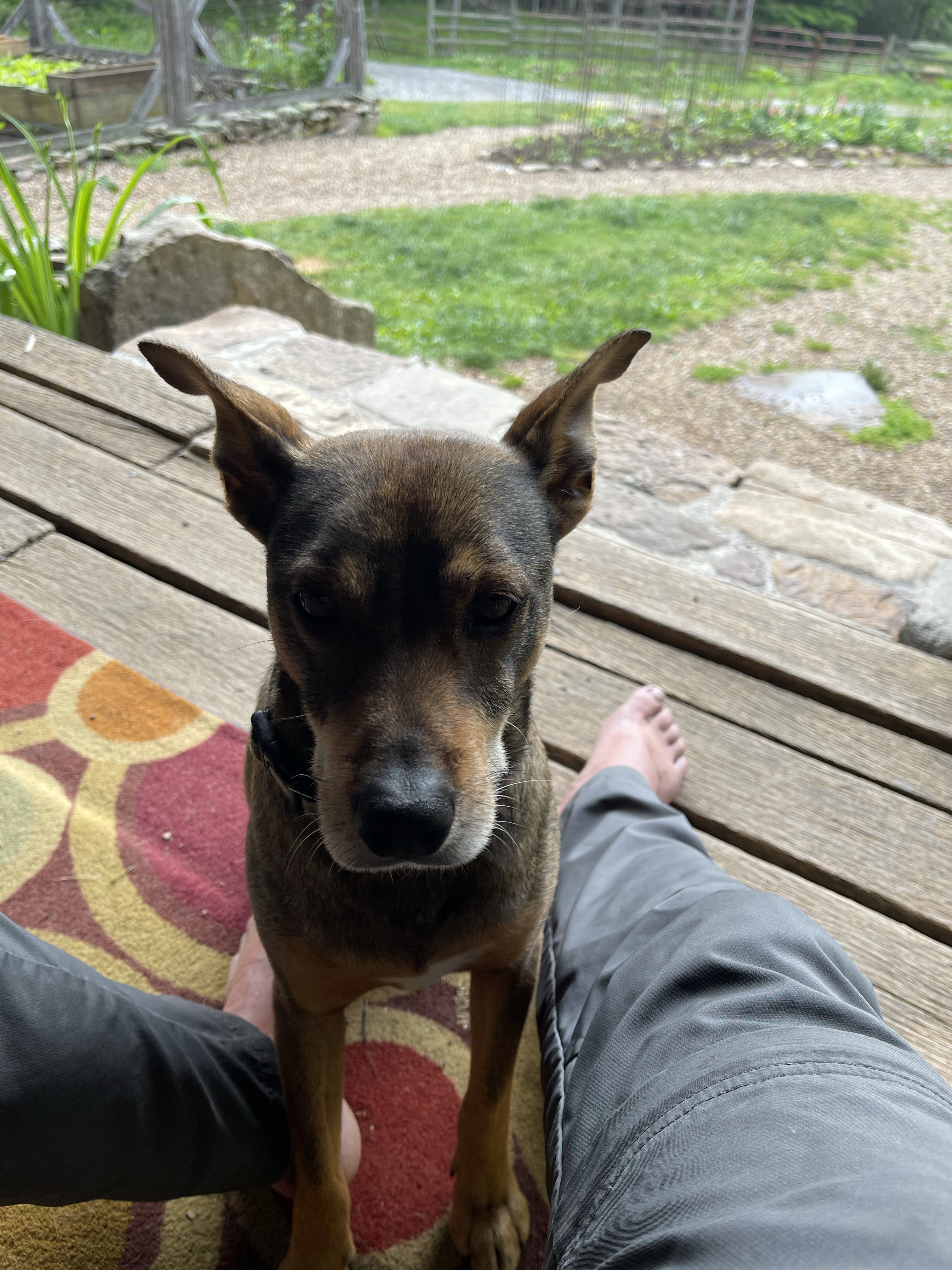 After pouring a cup of coffee I sat on the porch with Mountain Sage. He was an interesting hiker, with a great heart and an amazing service doggo named “Sam”, oh, that was his casual name, his commands name was different. In other words, when MS wanted to give commands to “Sam” to work, he called him by his other name, I just don’t remember it. You see, mountain sage has Parkinson’s, and his trembles keep him from doing a lot of things that we take for granted, signing a Trail journal at a shelter or hostel for instance. Setting up his tent is more difficult with the trembles too, but MS pushes through and does it nonetheless! Well, today, MS was going to be on the phone with a company in California that makes a device that he can wear that will allow him to control his trembles and may even allow them to be turned off completely!!! So amazing!! He was super excited about it last night as we were on the phone with the company making an appt for today’s call. I wasn’t going to be around but want to check in and see how it went!